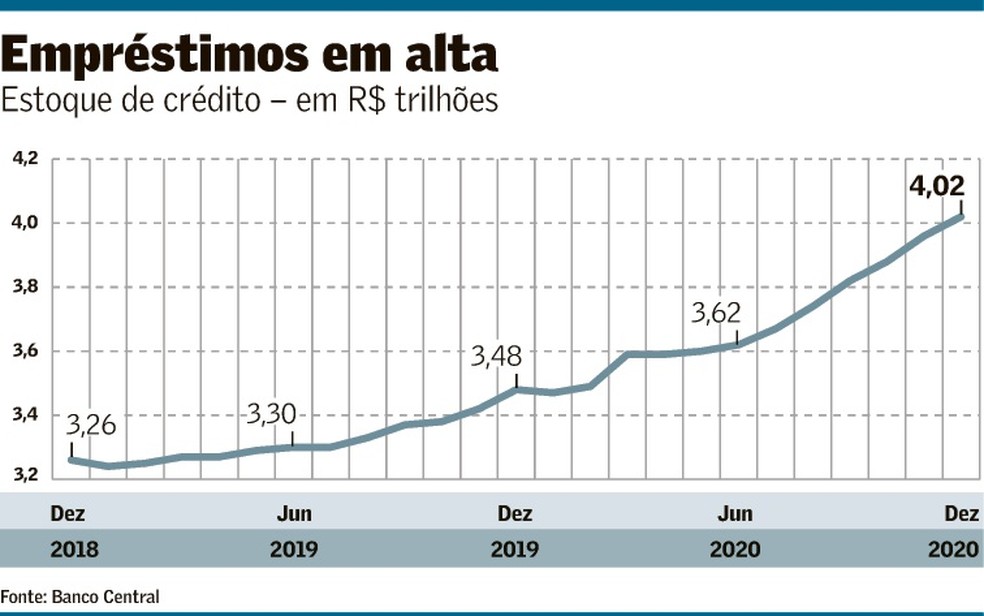Fonte: https://valor.globo.com/financas/noticia/2021/01/29/credito-cresce-16-apesar-de-pandemia.ghtml acessado em 01/02/2021.